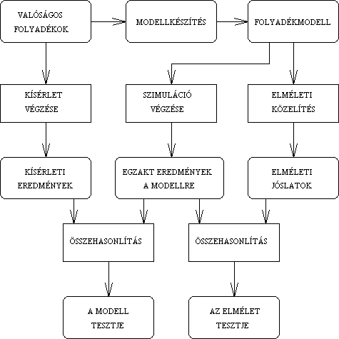 Egy reális rendszerről modellt alkotunk, amit elméleti és szimulációs módszerekkel tanulmányozhatunk. Az elméleti módszerek gyakran közelítéseket és elhanyagolásokat tartalmaznak. A szimulációk az adott modellre egzakt eredményeket szolgáltatnak, így egy elmélet vizsgálata, tesztelése szempontjából a szimulációs adatok „kísérleti” adatoknak tekinthetők. A modell tesztelésére akkor nyílik lehetőség, ha a valósággal hasonlítjuk össze a szimulációs eredményeket. A kísérlethez képest a szimulációk az elmélet szerepét töltik be. A fentieket Allen és Tildesely könyvéből vett folyamatábra szemlélteti [1].